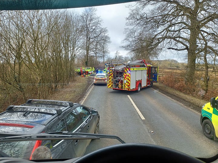 Then eventually everyone but the police accident investigators started to go, and I was finally able to leave, reversing about 500 yards back along the closed road to a farm entrance where I could turn around. And then I could just… carry on with my day… That felt weird.